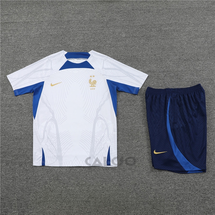 • Tuta da Track Francia Manica Corta 2022-2023 Bianco - Pantaloncini